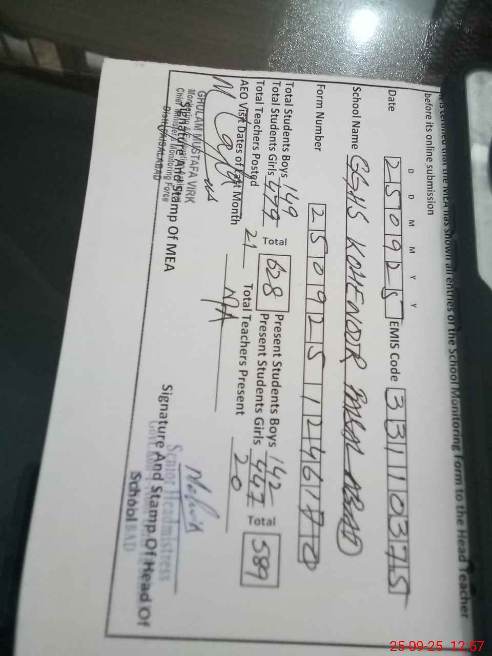 | Name: ME**** Designation: (School Headmaster's/Headmistress's) Sr Headmistress Phone/Cell Number: 03**** |
