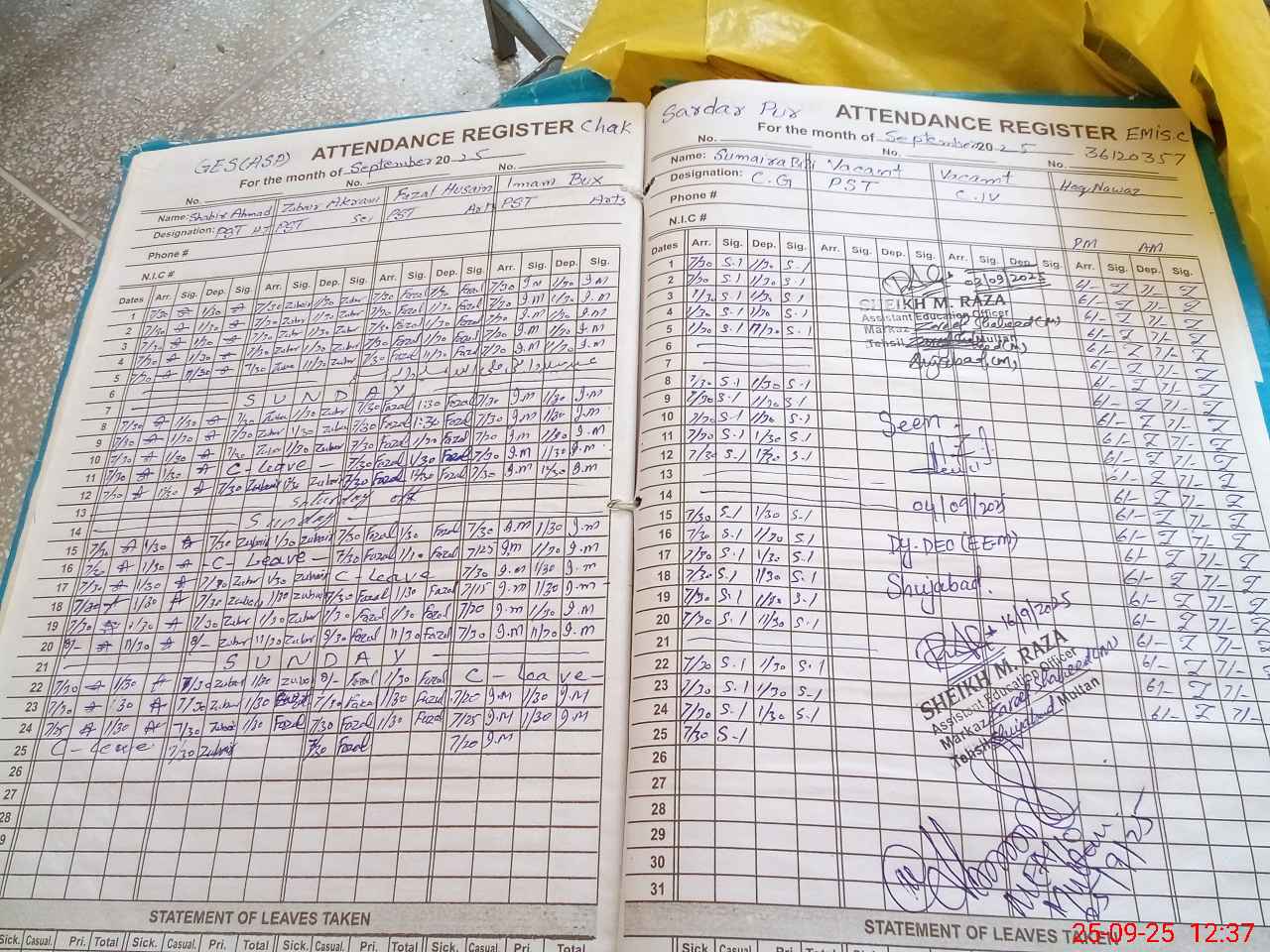 | Name: SH**** AH**** Designation: (School Headmaster's/Headmistress's) PST Phone/Cell Number: 03**** |