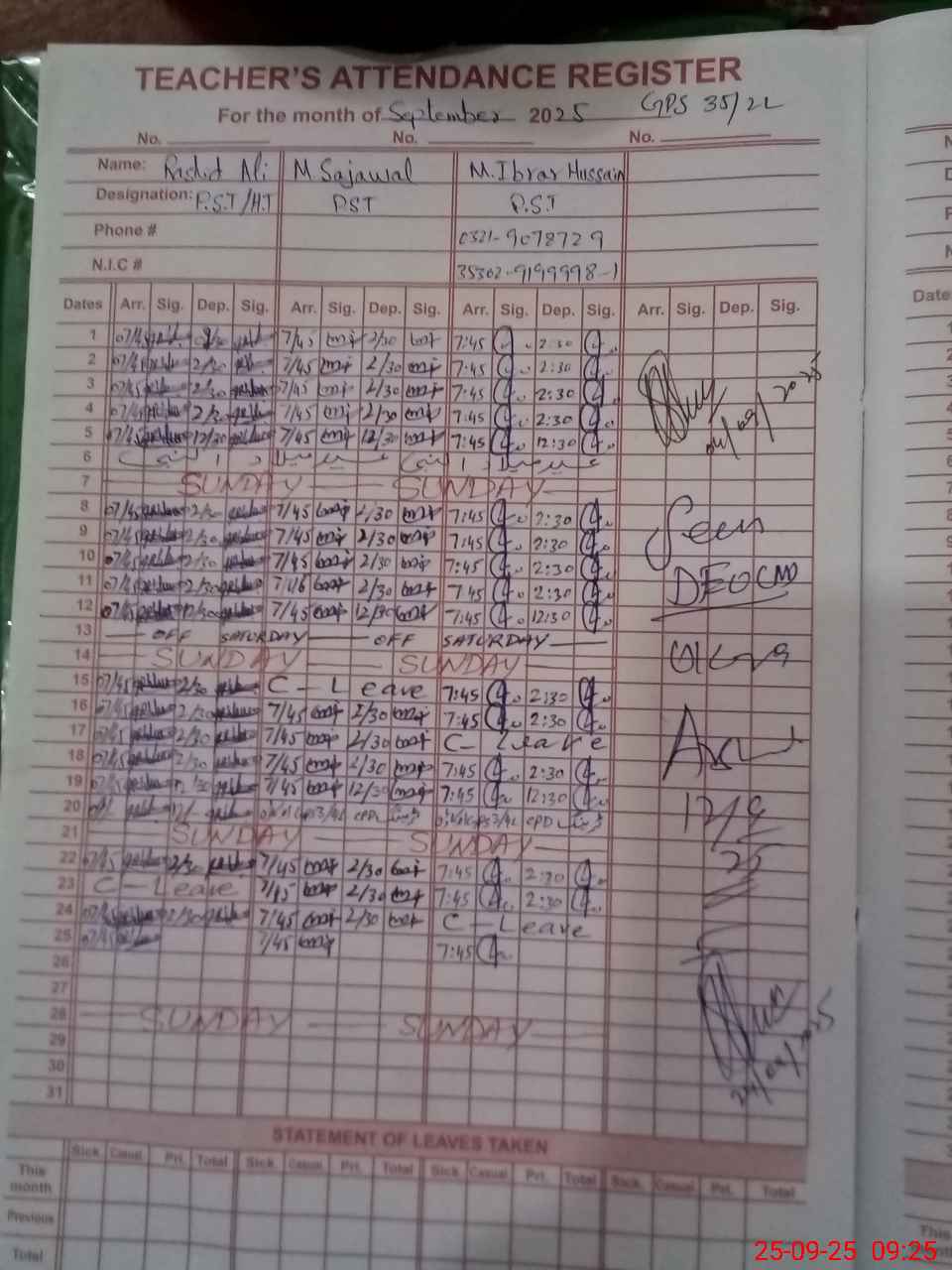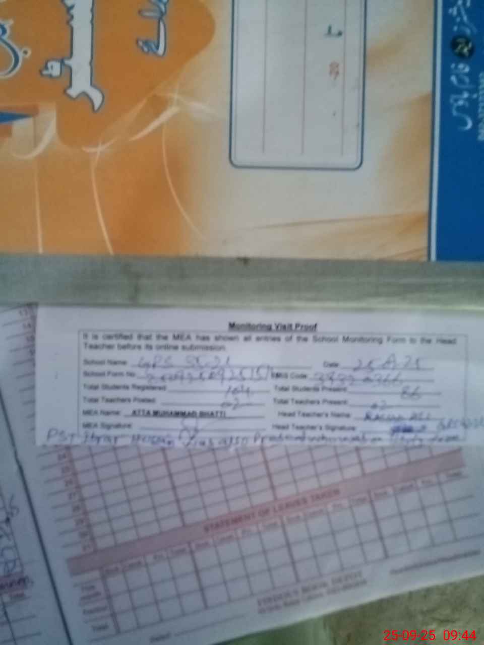 | Name: Ra**** Al**** Designation: (School Headmaster's/Headmistress's) PST Phone/Cell Number: 03**** |