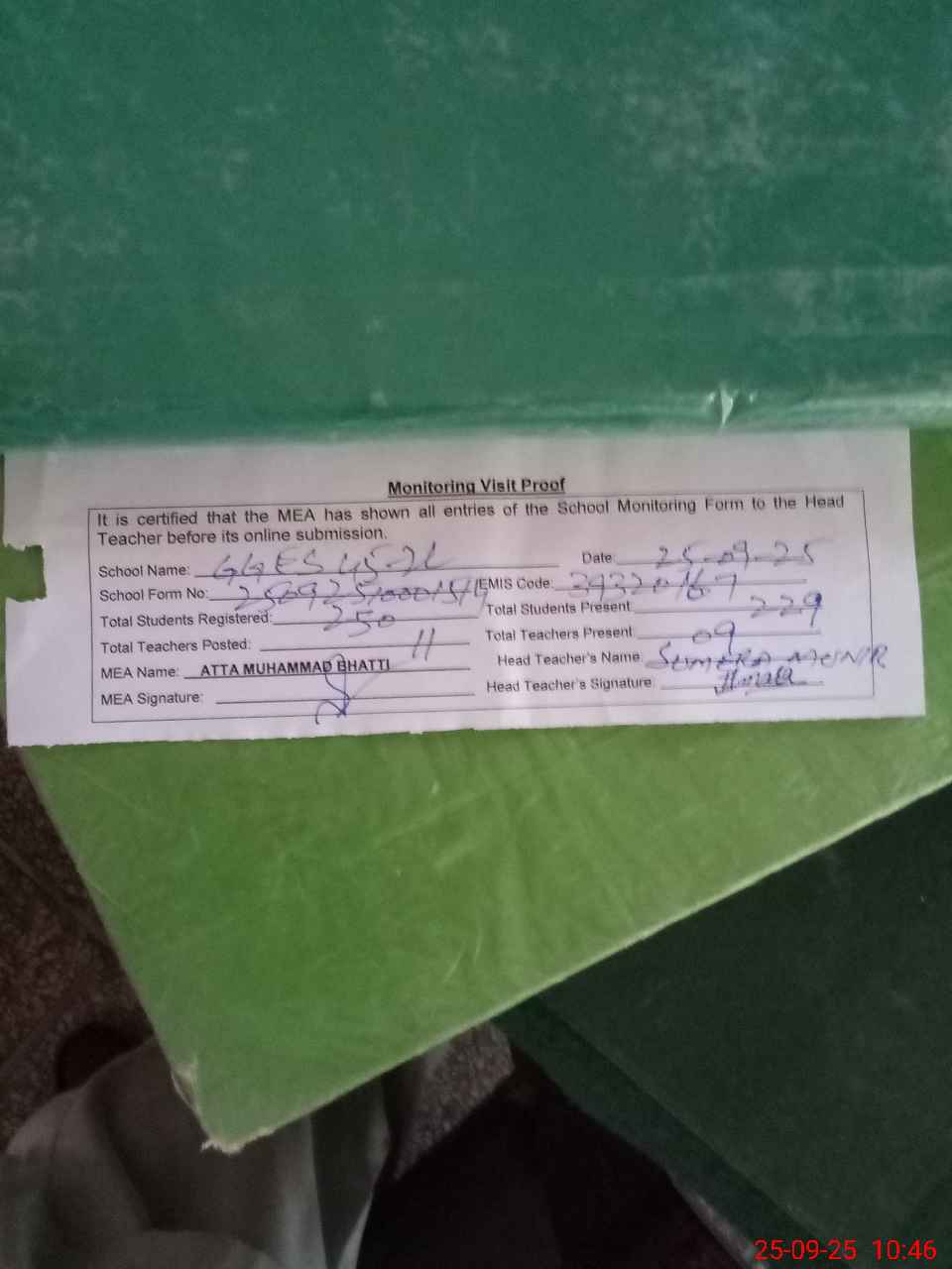 | Certified that this School was Inspected by the Undersigned MEA/DMO Today and the Information Stated Above is as Per Record. | |||||