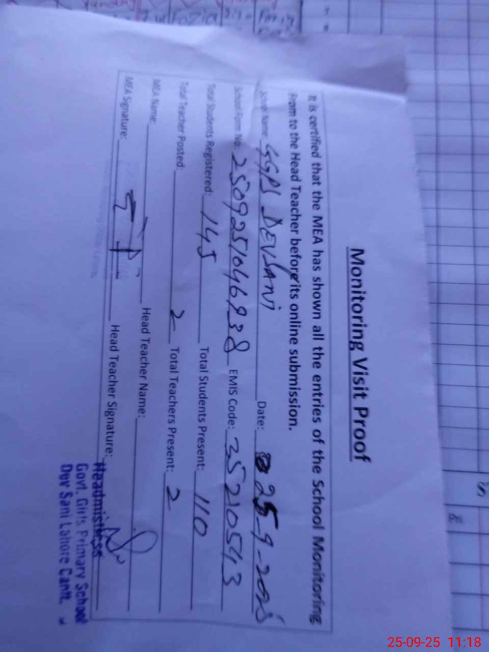 | EMIS Code: 35210543 | Name of School: GGPS DEVSANI | |||