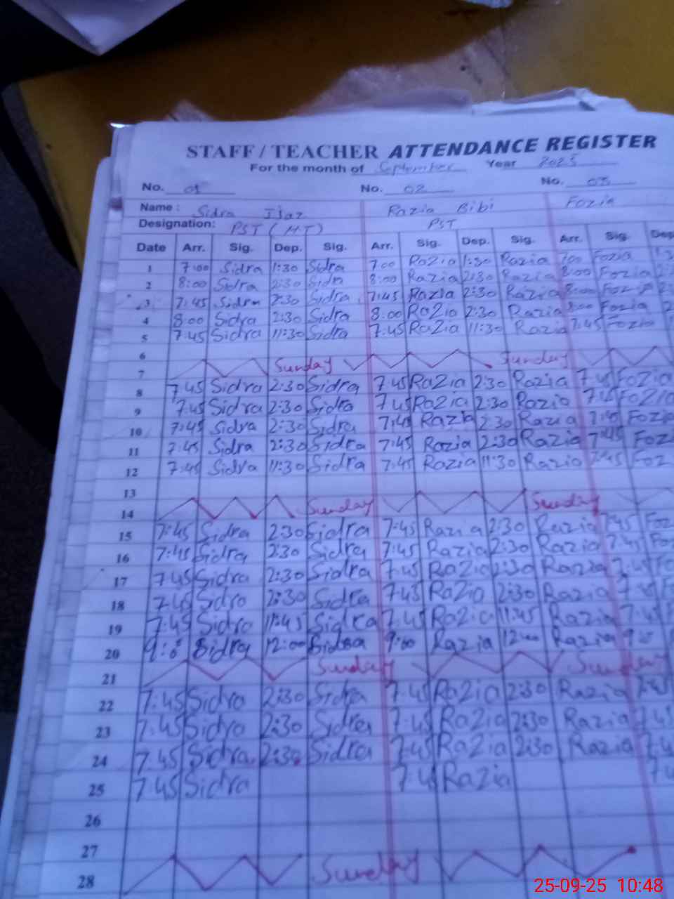 | Name: SI**** IJ**** Designation: (School Headmaster's/Headmistress's) PST Phone/Cell Number: 03**** |