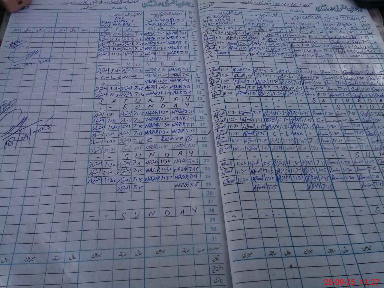 | CNIC | Full Name | Designation | R/C | Absence During Last Calender Month |