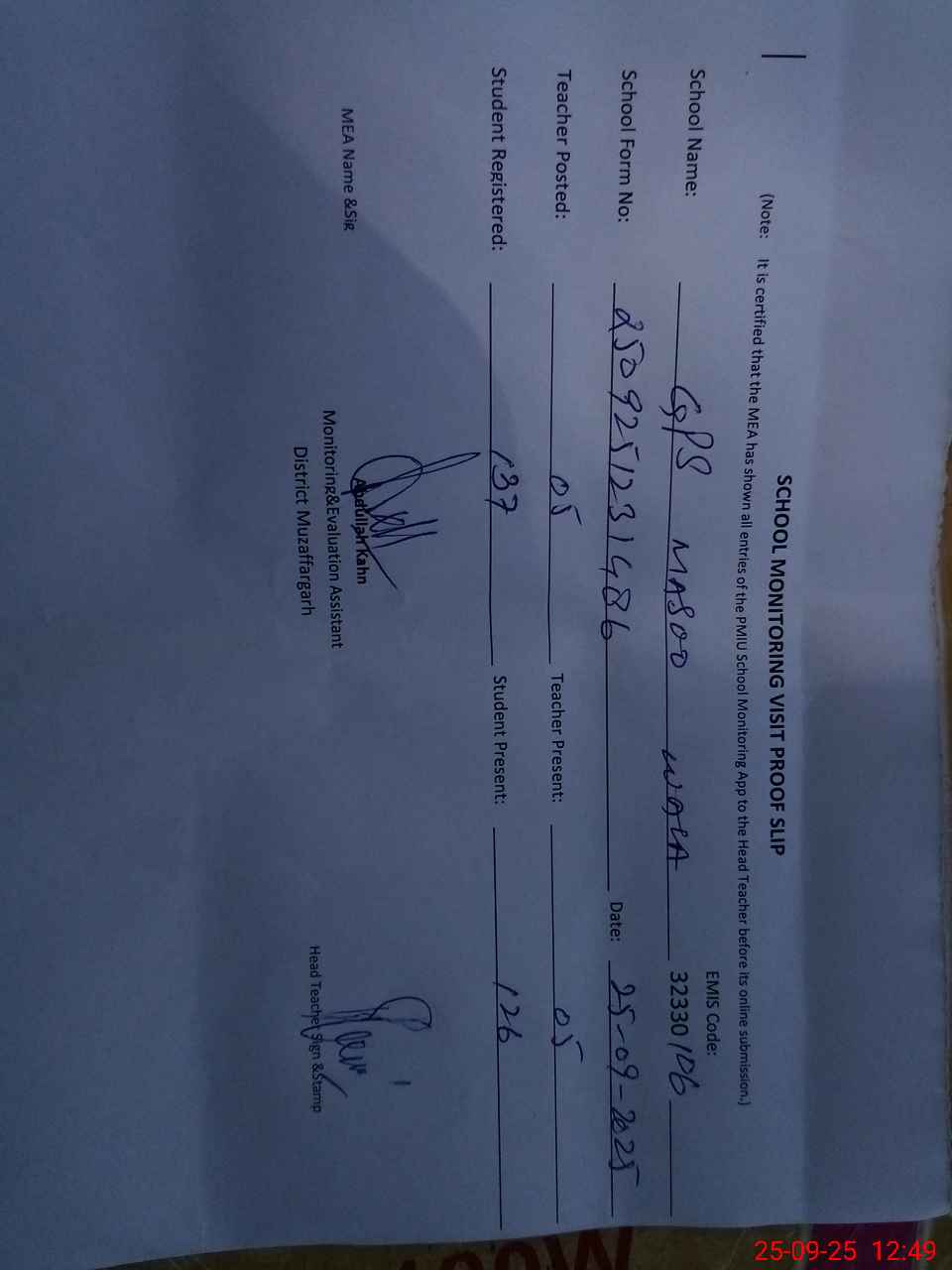 | EMIS Code: 32330106 | Name of School: GPS MASSU WALA | |||