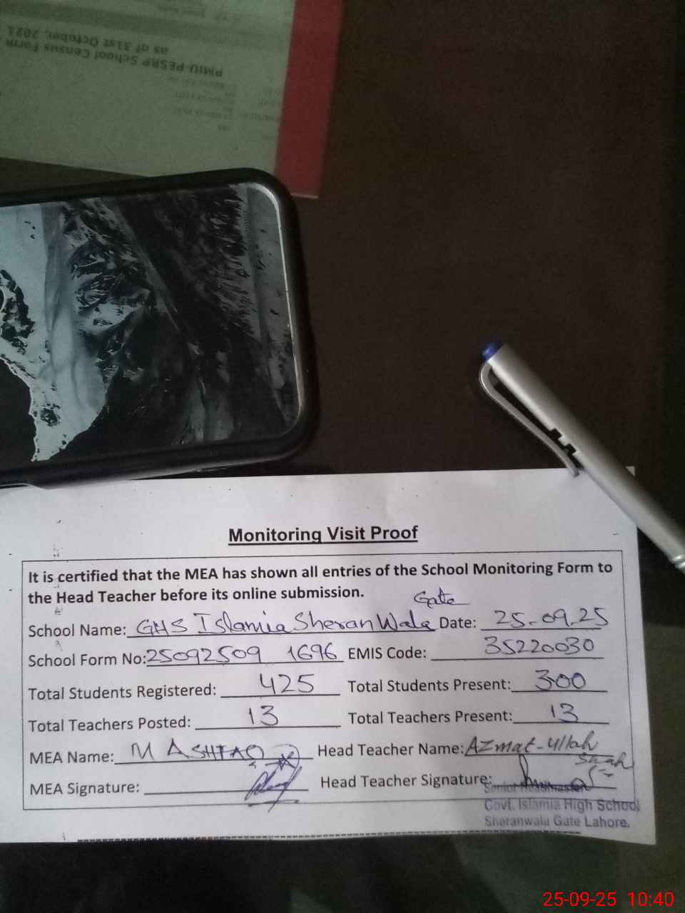| EMIS Code: 35220030 | Name of School: GHS ISLAMIA SHERANWALA GATE | |||