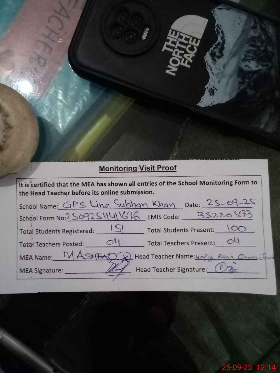 | EMIS Code: 35220593 | Name of School: GPS LINE SUBHAN KHAN | |||