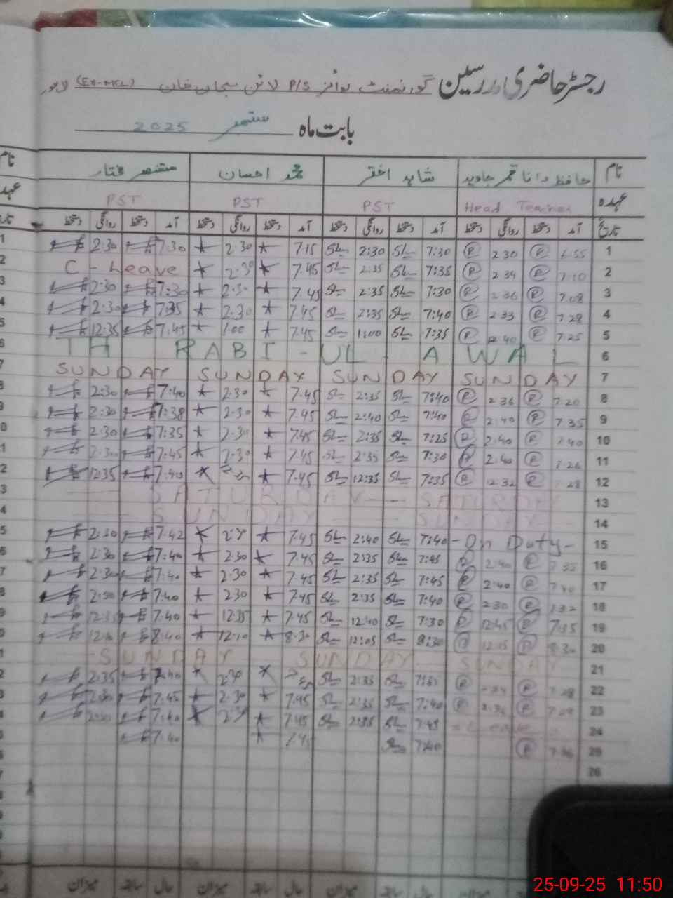 | Remarks (Use Separate Page if Required): PST Mustansir Mukhtar transferred here since 23 Jan 25 but his name not shown on SIS Wash club not functional School building is looking old and paint work is not up to standard 35220593 | |||||