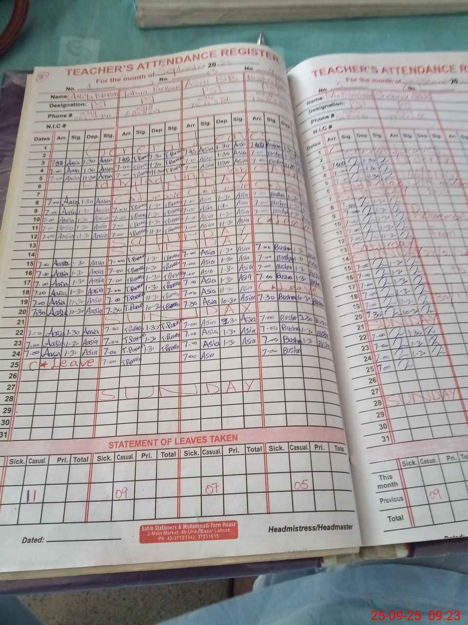 | CNIC | Full Name | Designation | R/C | Absence During Last Calender Month |