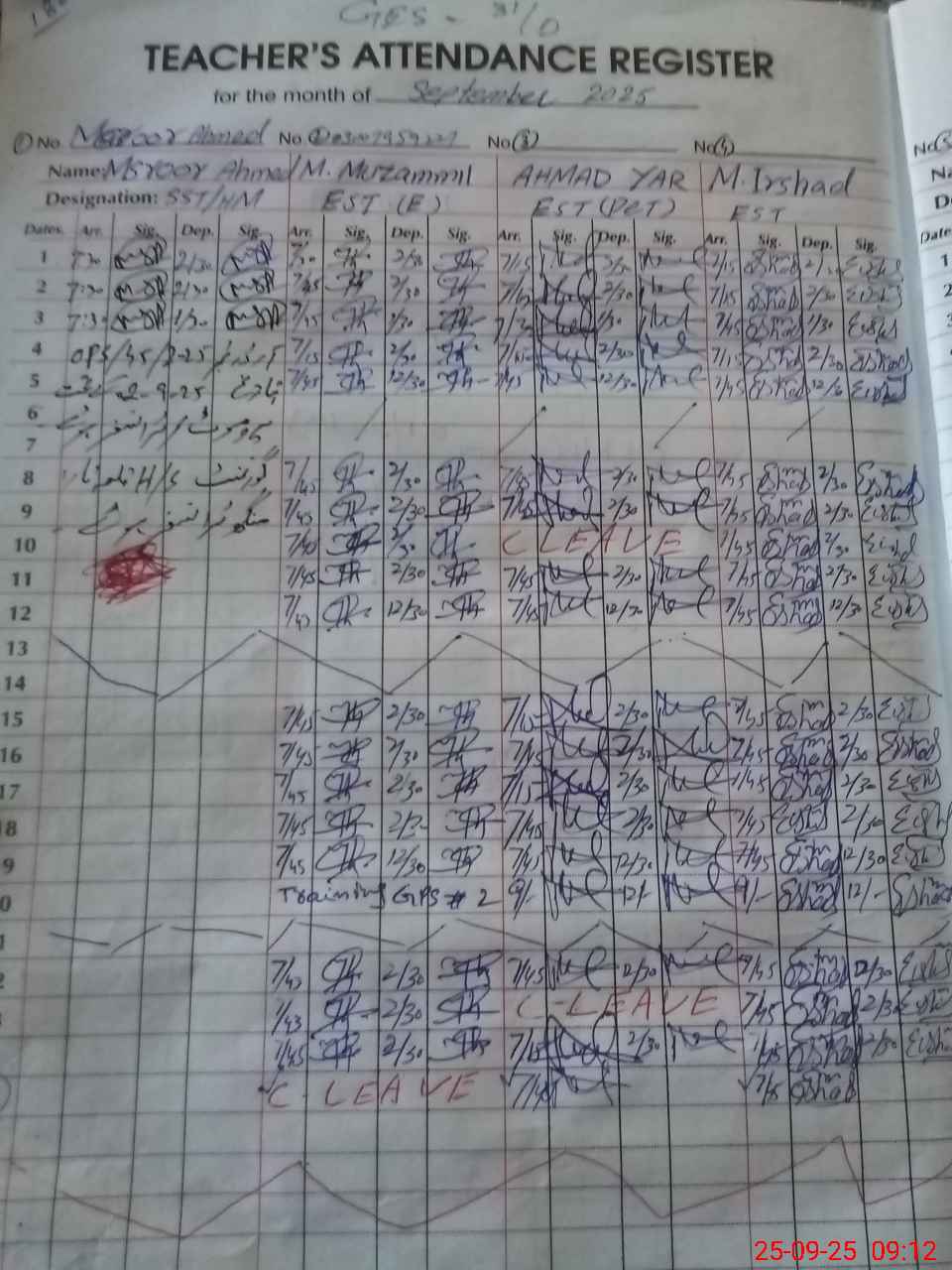 | CNIC | Full Name | Designation | R/C | Absence during last cal. month |
