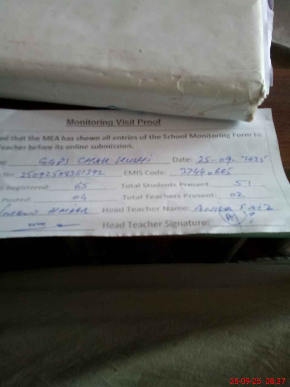 | EMIS Code: 37440665 | Name of School: GGPS CHAK KHUSH | |||