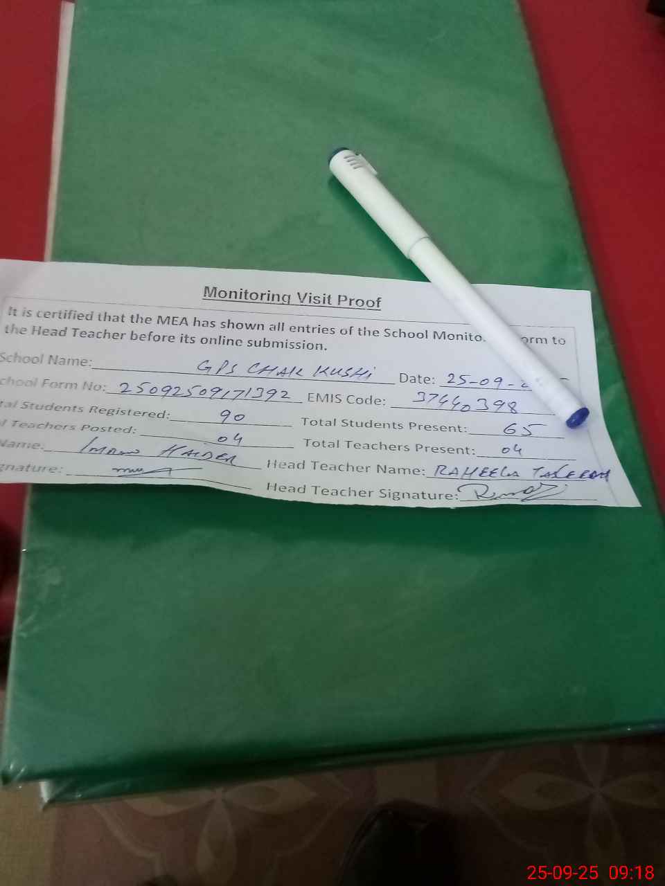 | EMIS Code: 37440398 | Name of School: GPS CHAK KHUSHI | |||