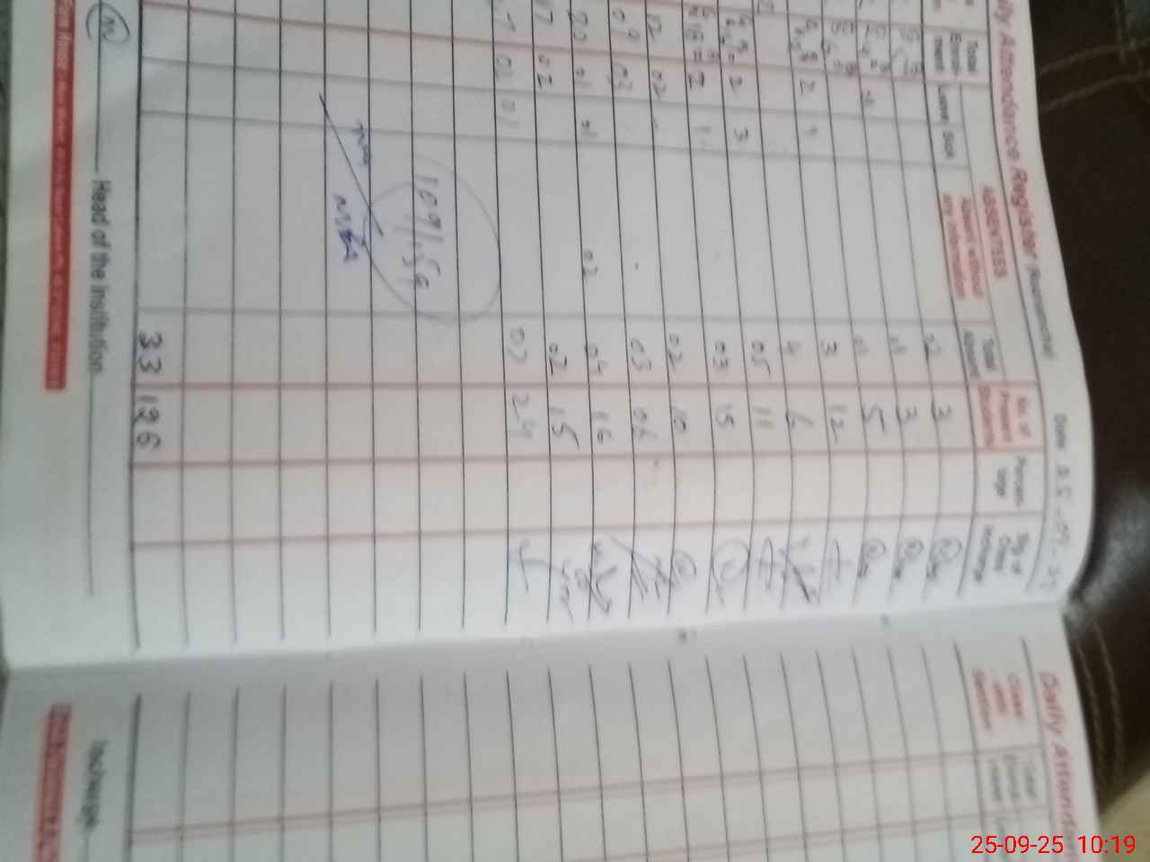 | Total Students Present | 4 | 0 | 3 | 5 | 10 | 6 | 9 | 11 | 9 | 6 | 10 | 15 | 21 | 109 | ||