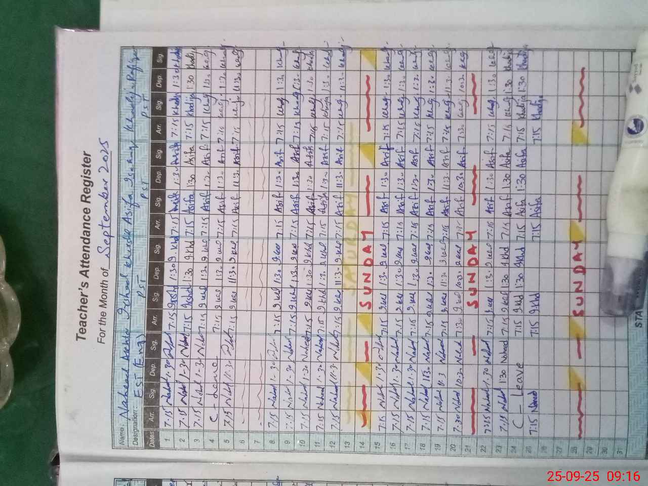 | CNIC | Full Name | Designation | R/C | Absence During Last Calender Month |