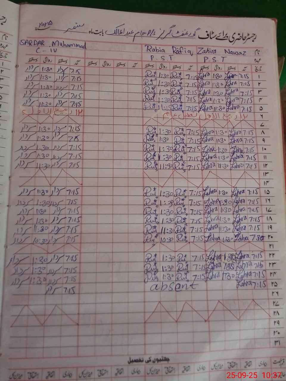 | 31**** | Ra**** Ra**** | ESE | Contract | 0 | 0 | 0 | 0 | 0 | 0 | 0 | 0 | 0 | Absent (Un-Authorized) |