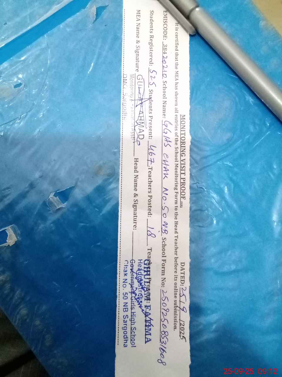 | EMIS Code: 38420210 | Name of School: GGHS CHAK NO.50 NB | |||