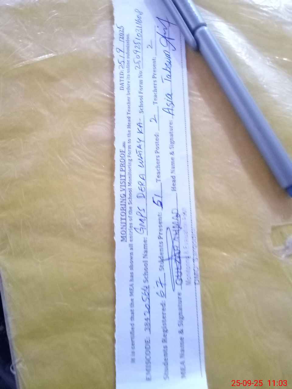 | Attendance Register | Head Teacher | MEA with School | Visit Proof |