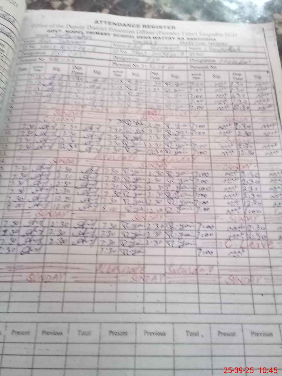 | CNIC | Full Name | Designation | R/C | Absence During Last Calender Month |