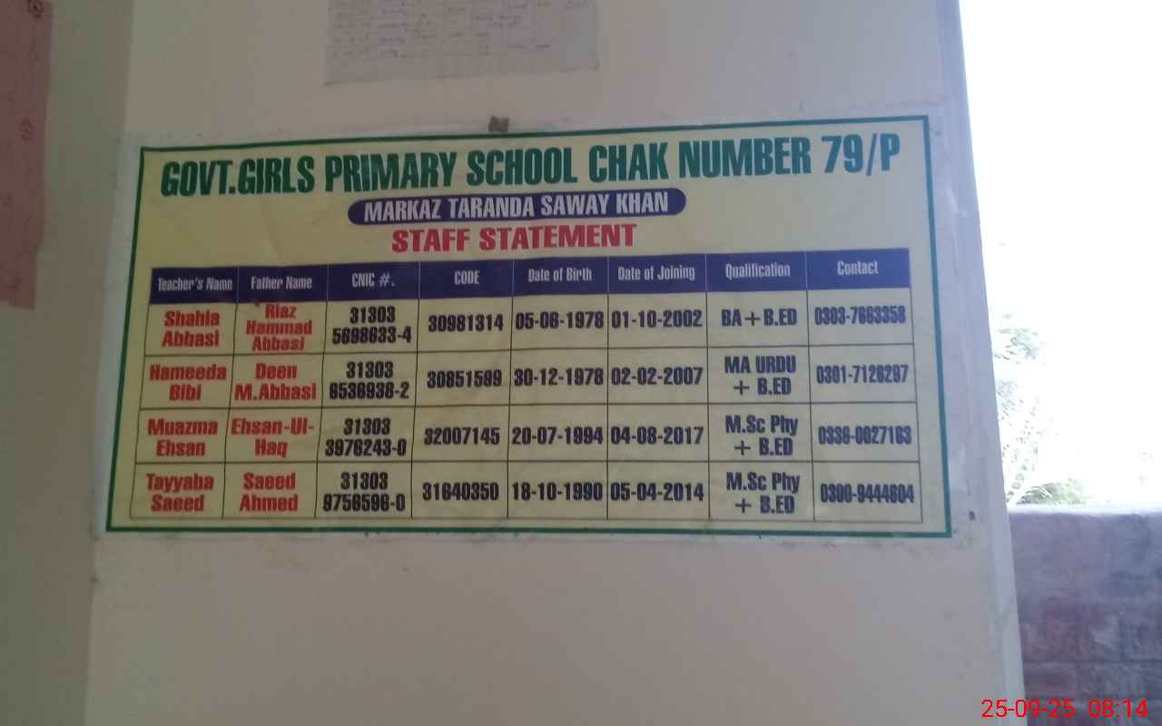 | EMIS Code: 31330735 | Name of School: GGPS CHAK NO. 79/P | |||