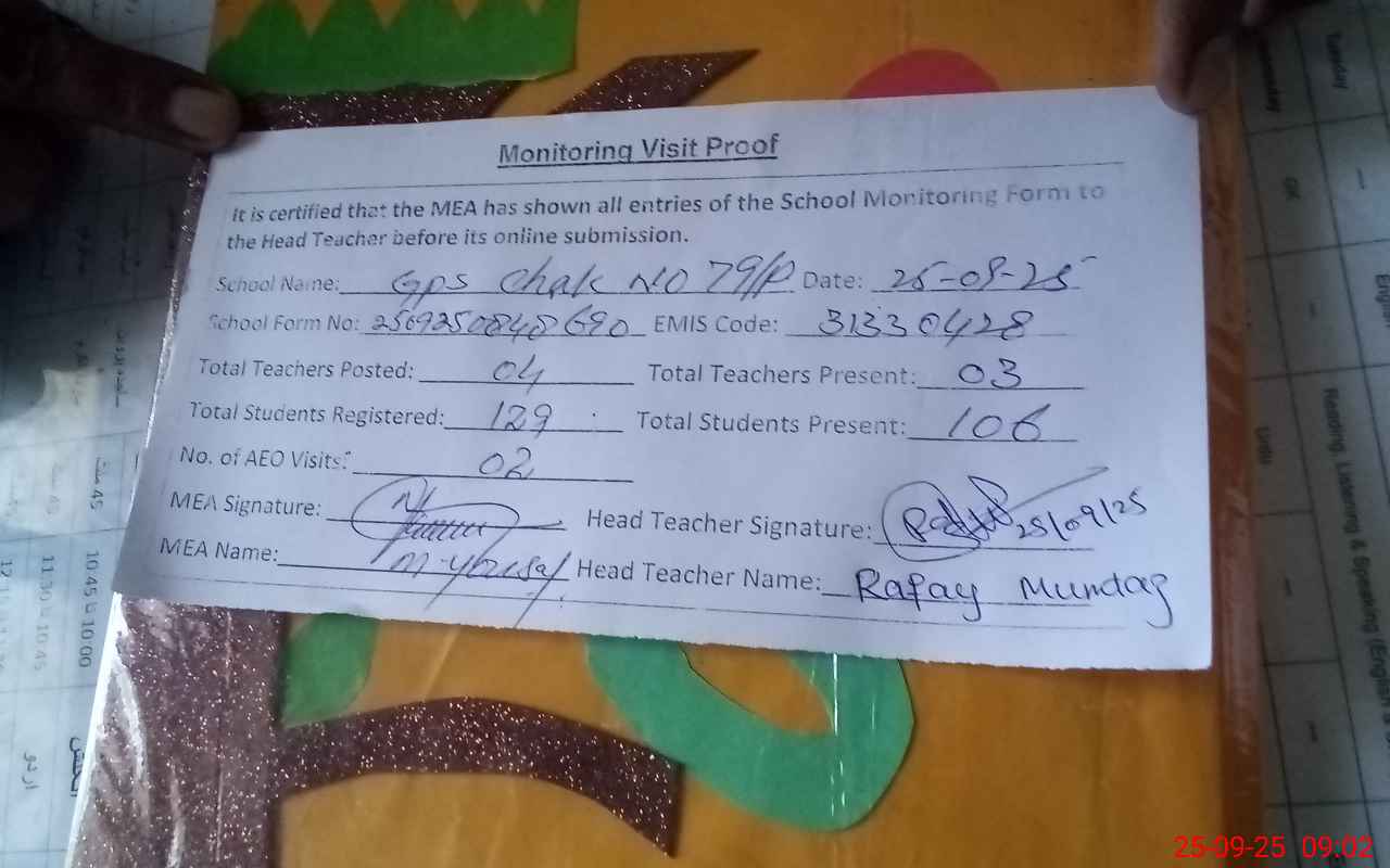 | EMIS Code: 31330428 | Name of School: GPS CHAK NO. 79/P | |||