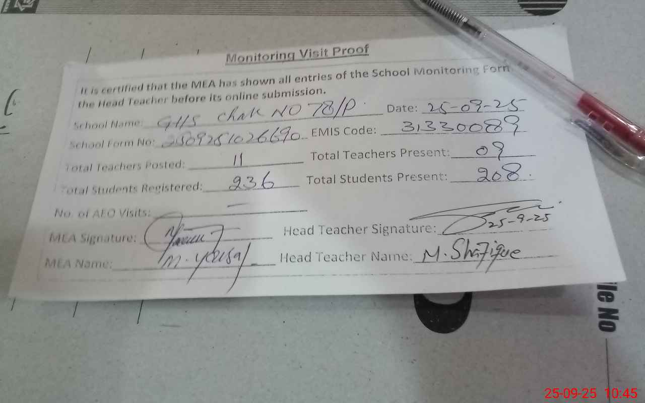 | EMIS Code: 31330089 | Name of School: GHS CHAK 78/P | |||