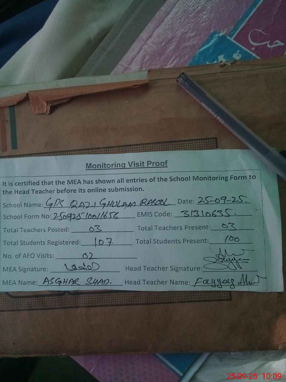 | EMIS Code: 31310635 | Name of School: GPS QAZI GHULAM RASOOL | |||