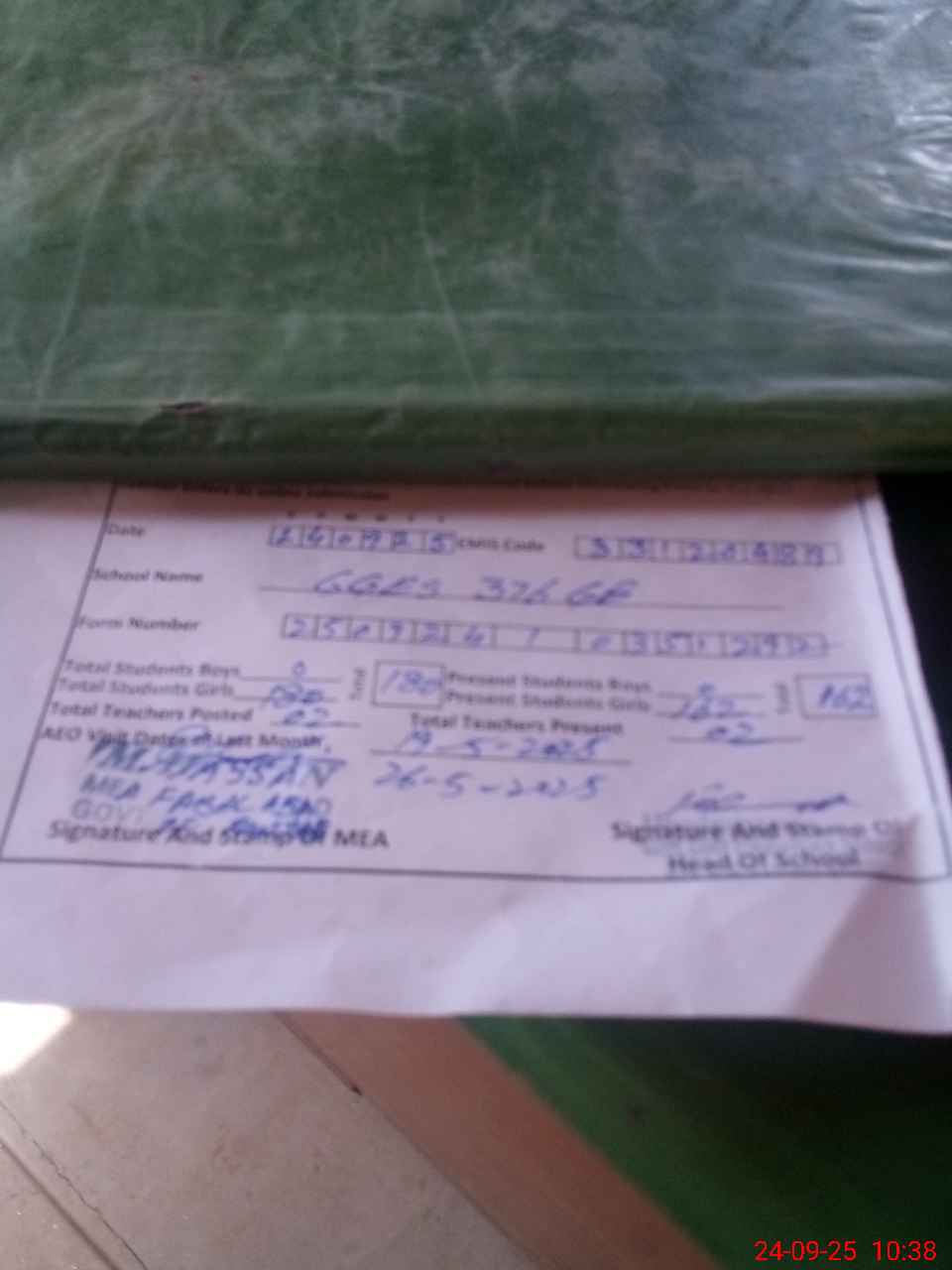 | Certified that this School was Inspected by the Undersigned MEA/DMO Today and the Information Stated Above is as Per Record. | |||||