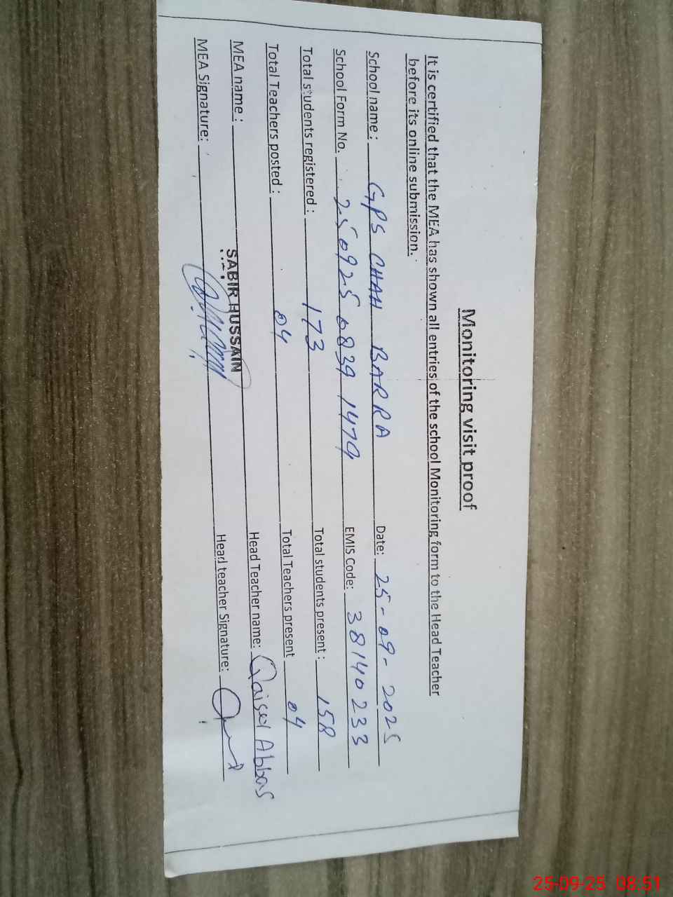 | EMIS Code: 38140233 | Name of School: GPS CHAH BARRA | |||