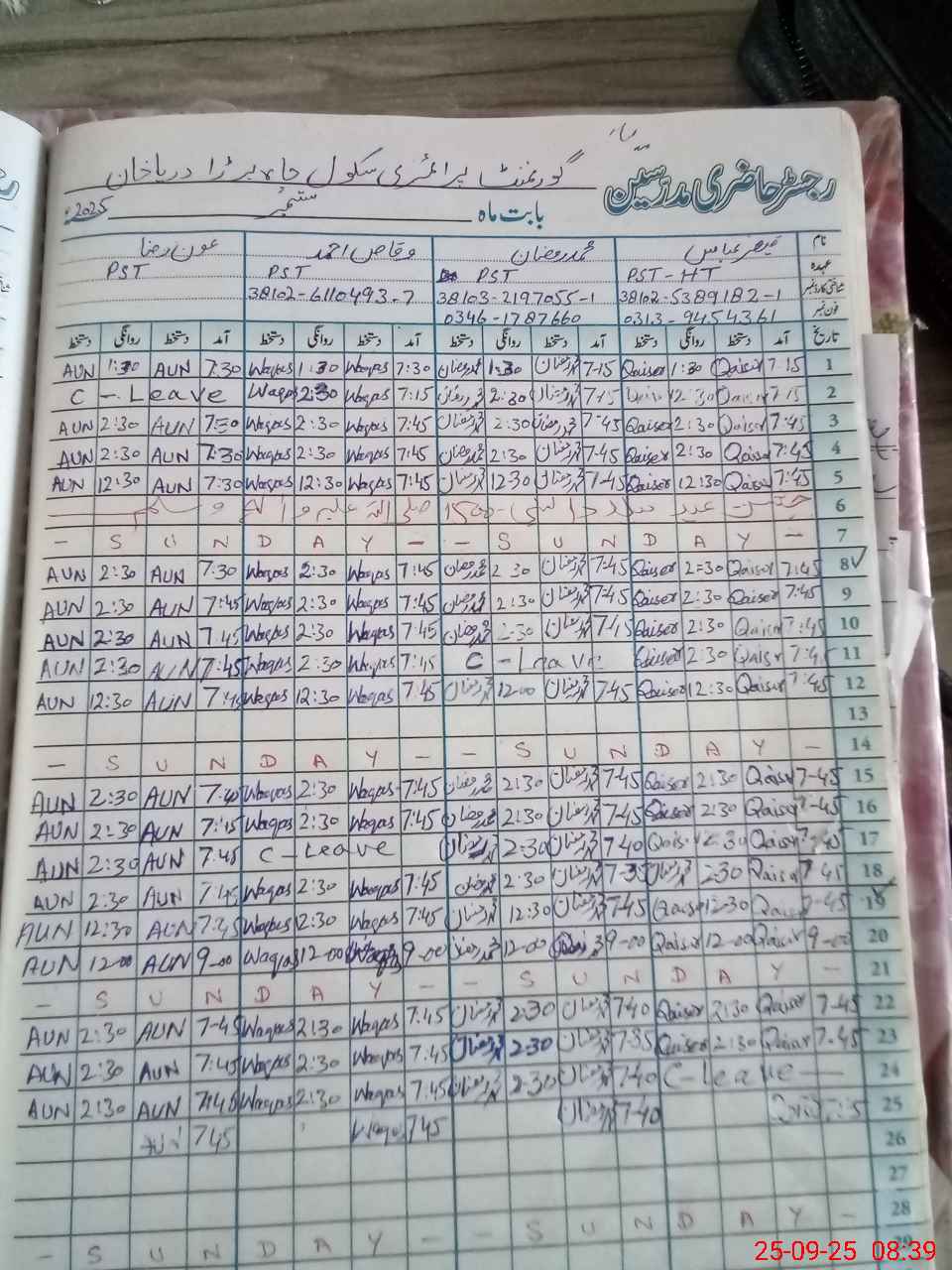 | Name: Qa**** Ab**** Designation: (School Headmaster's/Headmistress's) PST Head Phone/Cell Number: 03**** |