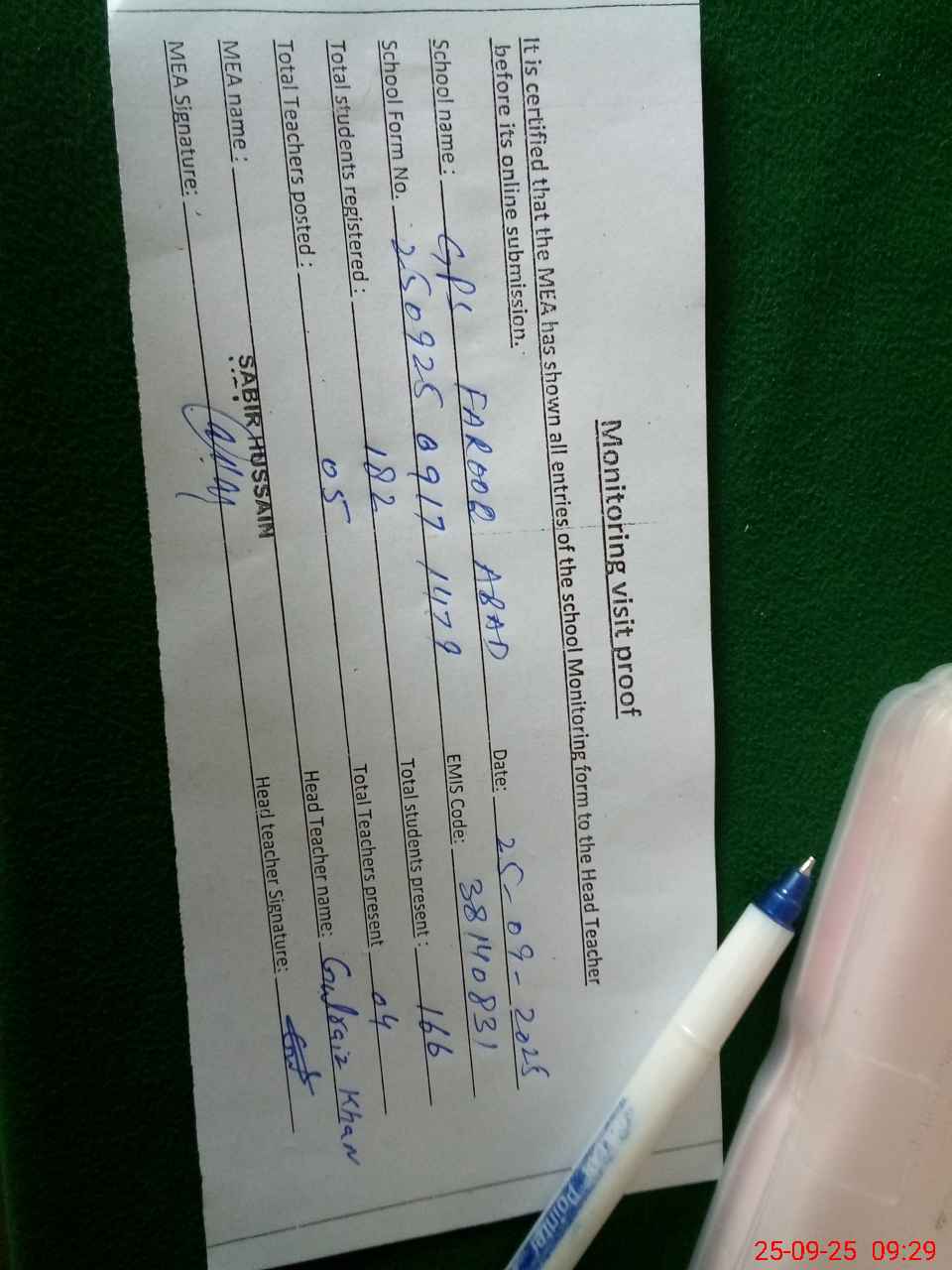 | EMIS Code: 38140831 | Name of School: GPS FAROOQ ABAD | |||