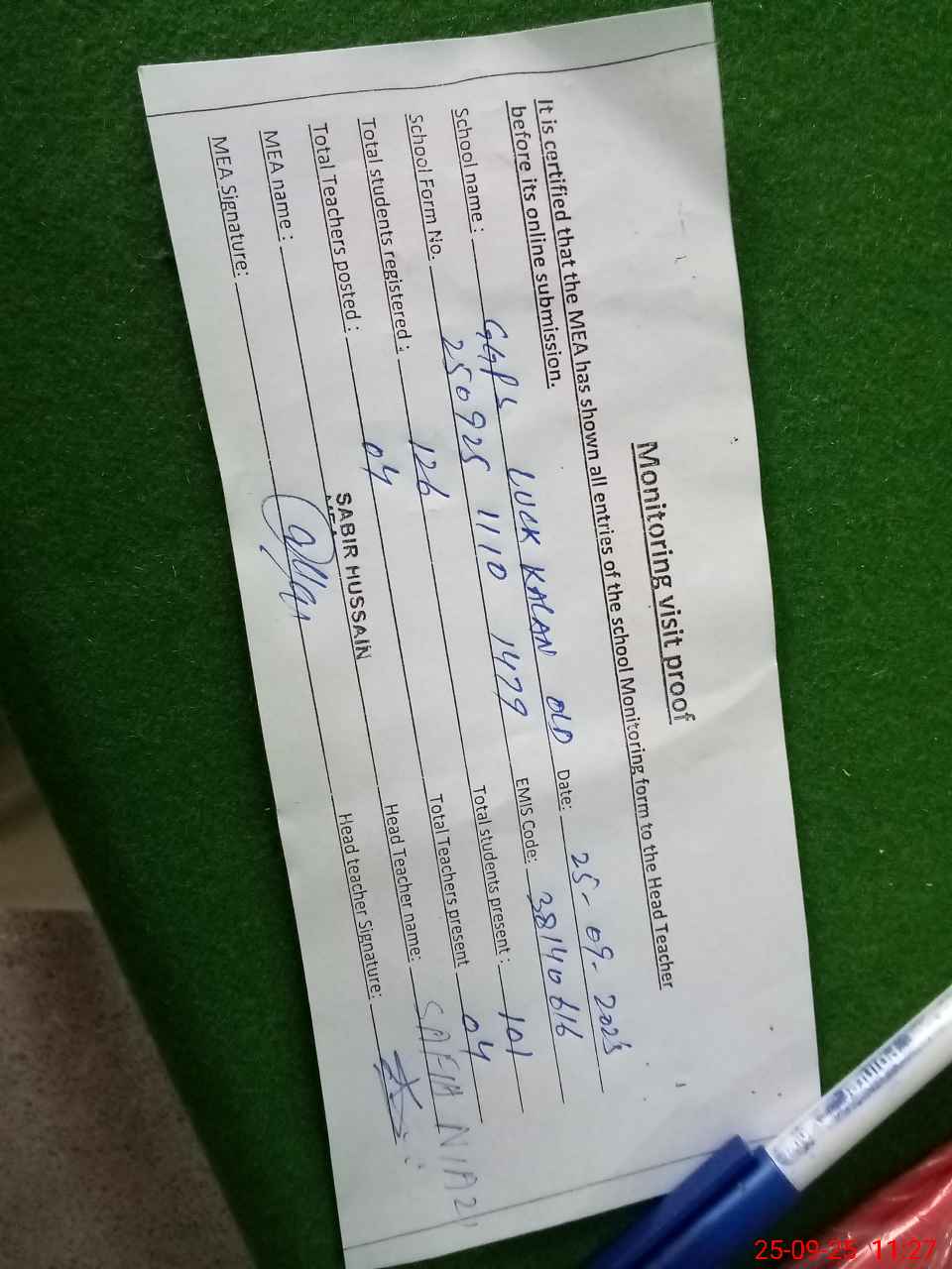 | EMIS Code: 38140616 | Name of School: GGPS LUCK KALAN OLD | |||