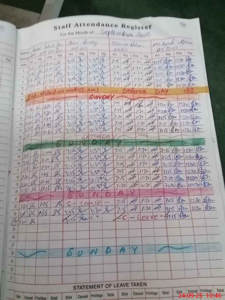 | Leave | Duty | Absent | Maternity | Medical | Ex- Pak |