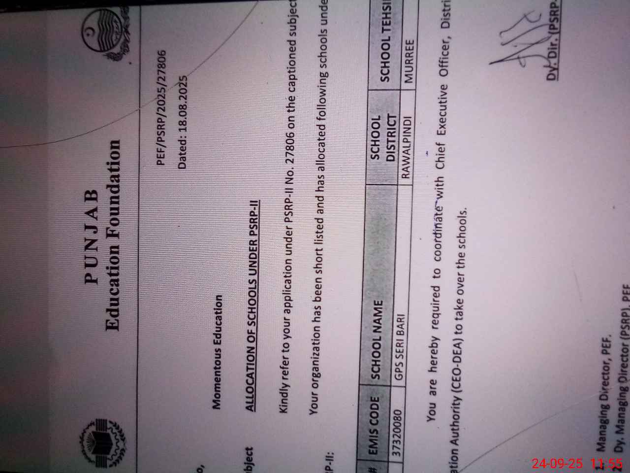 | Name: Mu**** Na**** Designation: (School Headmaster's/Headmistress's) PST Phone/Cell Number: 03**** |