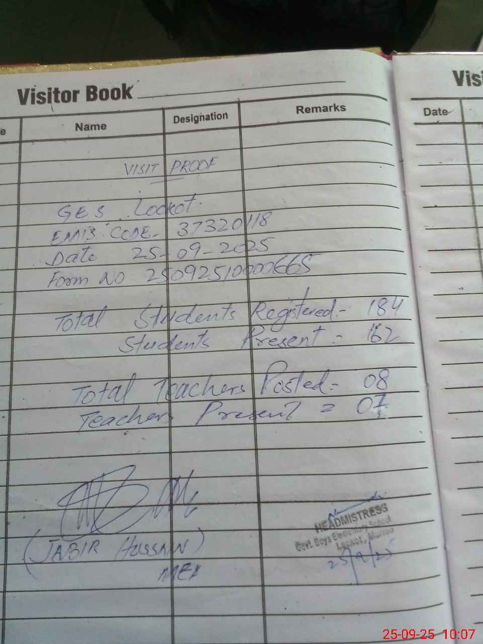 | Certified that this School was Inspected by the Undersigned MEA/DMO Today and the Information Stated Above is as Per Record. | |||||
