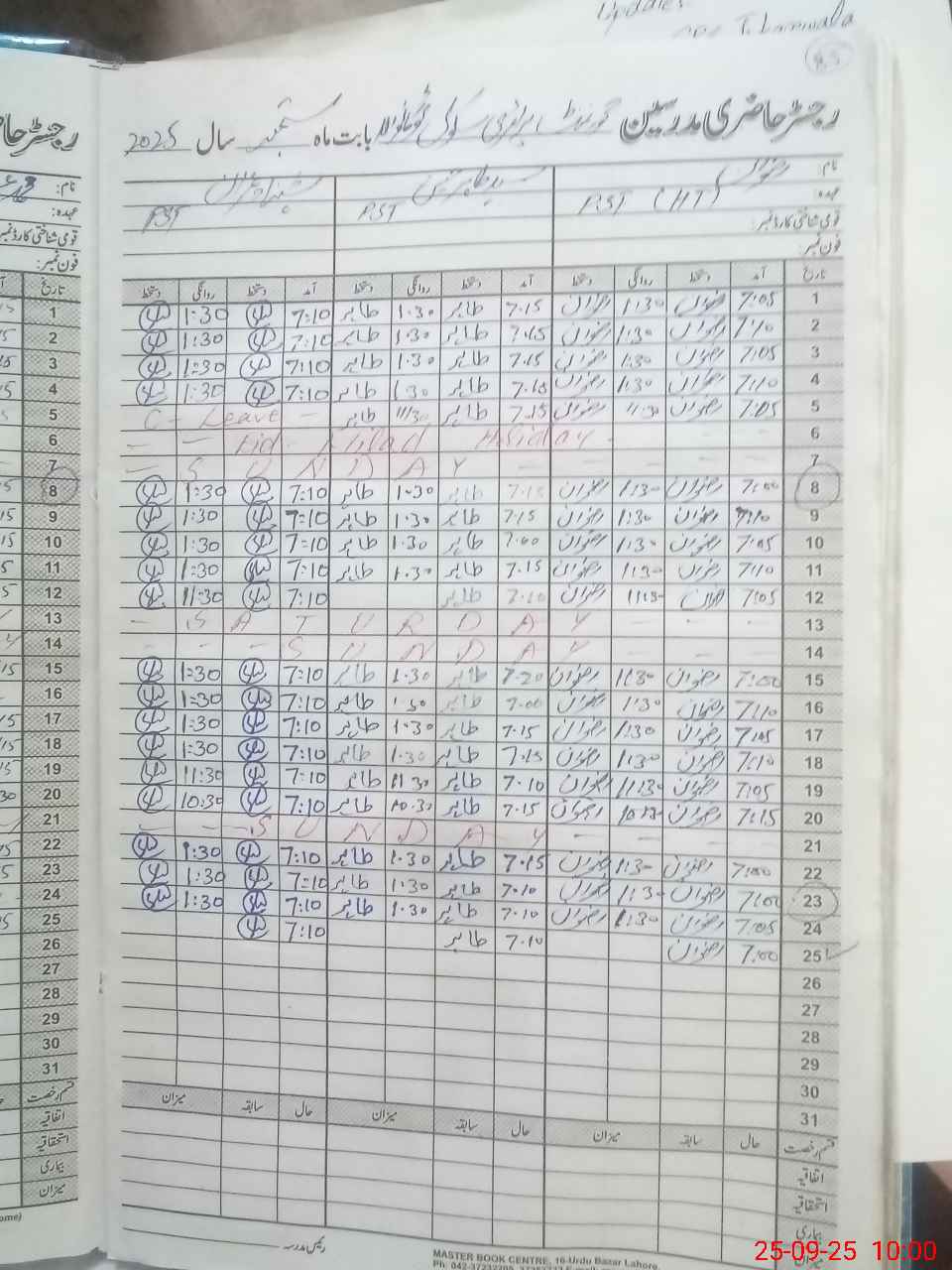 | CNIC | Full Name | Designation | R/C | Absence During Last Calender Month |
