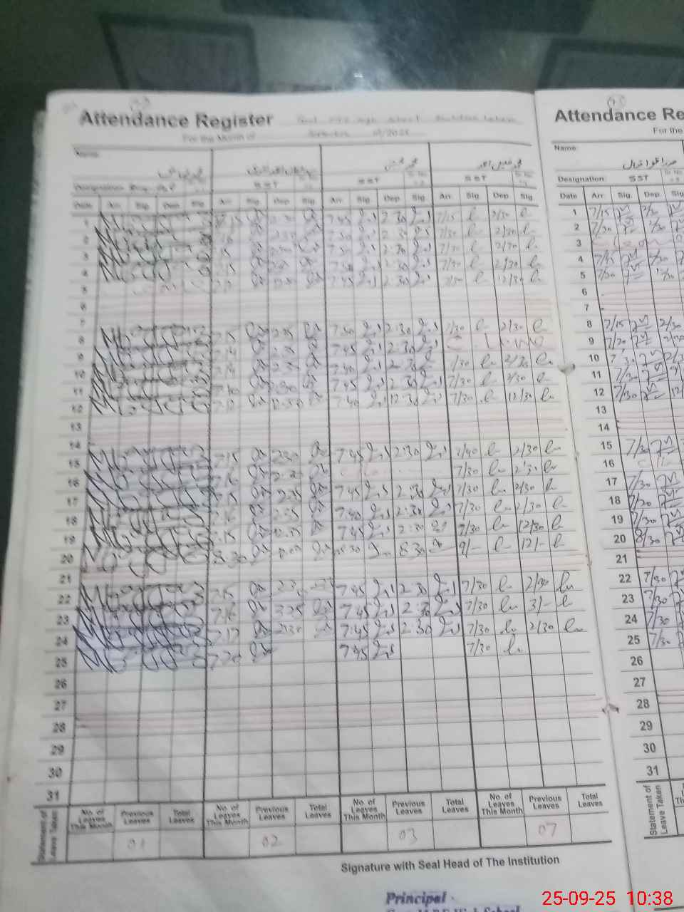 | Remarks (Use Separate Page if Required): Athar Hussain SSE selected as a lecturer in federal system and he joined there but his name is still shown in this system SIS so as per sop I marked him absent | |||||