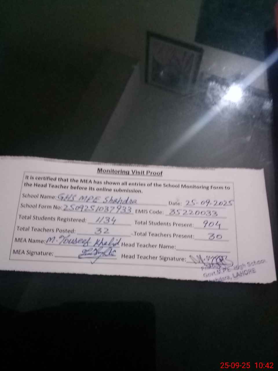 | EMIS Code: 35220033 | Name of School: GHS MPE SHAHDRA | |||