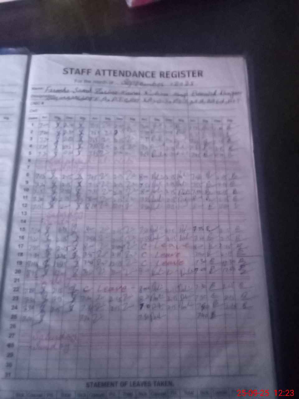 | Leave | Duty | Absent | Maternity | Medical | Ex- Pak |