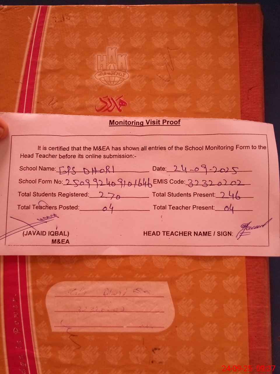 | EMIS Code: 32320202 | Name of School: GPS DHORI | |||