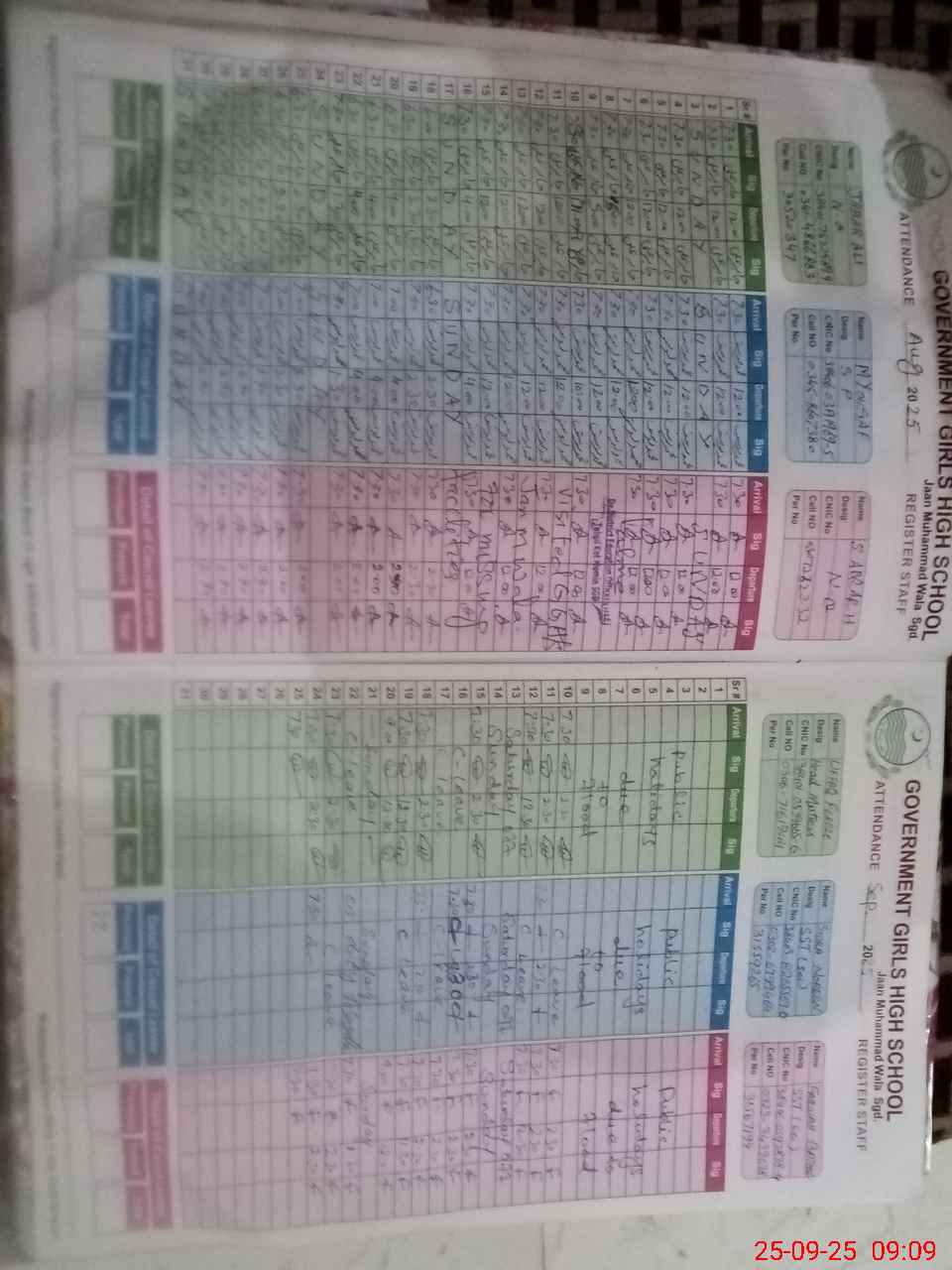 | CNIC | Full Name | Designation | R/C | Absence during last cal. month |