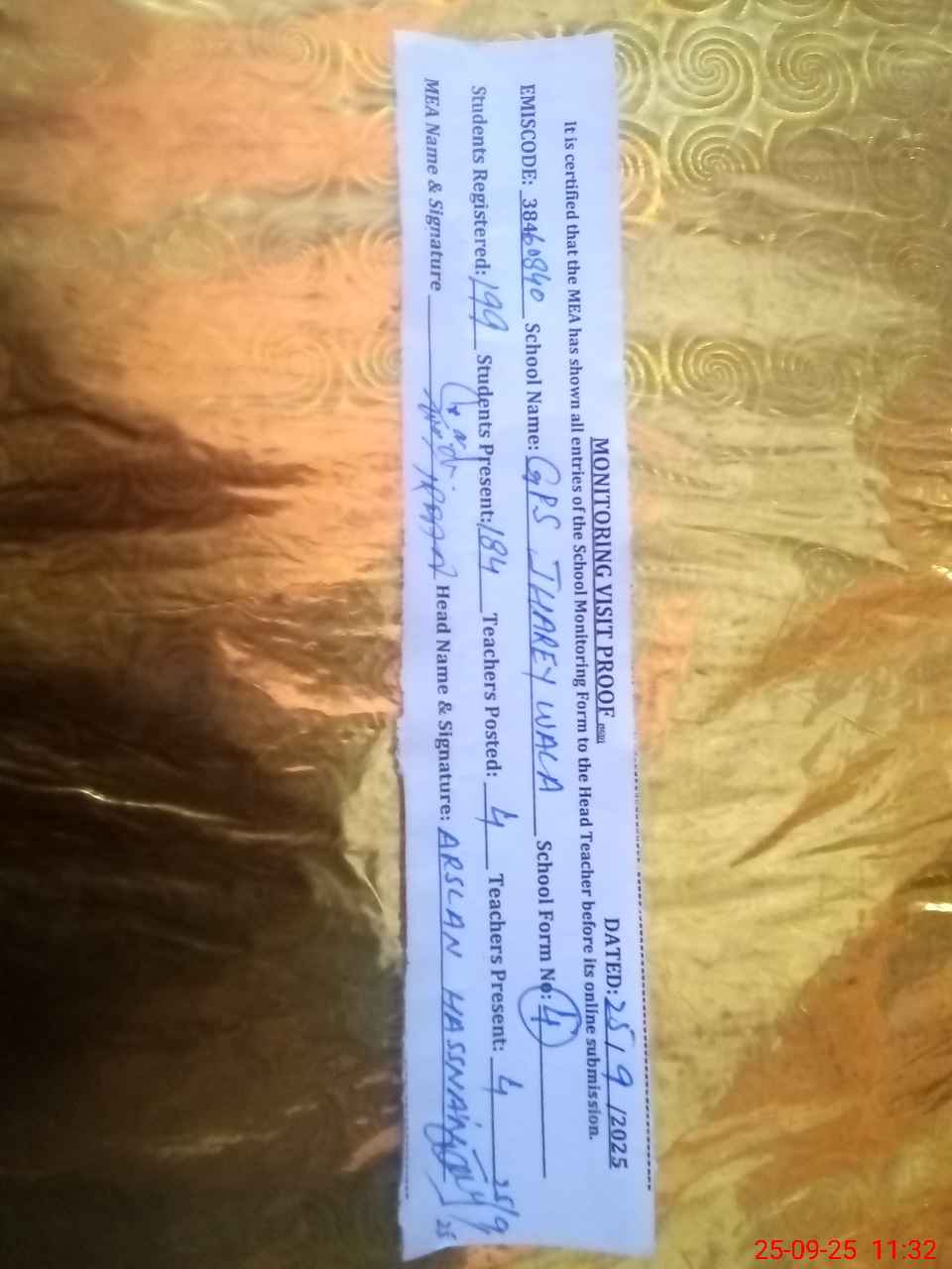 | EMIS Code: 38460840 | Name of School: GPS JHAREY WALA | |||