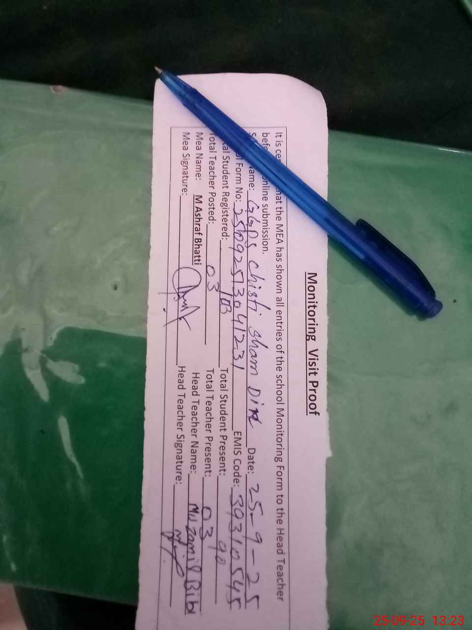 | EMIS Code: 39310545 | Name of School: GGPS CHISHTI SHAM DIN | |||