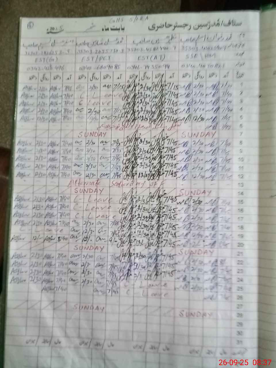 | 35**** | Ba**** Ah**** | SST | Regular | 0 | 0 | 0 | 0 | 0 | 0 | 0 | 0 | 0 | Exam Duty |