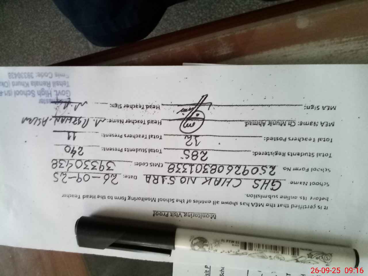 | Certified that this School was Inspected by the Undersigned MEA/DMO Today and the Information Stated Above is as Per Record. | |||||