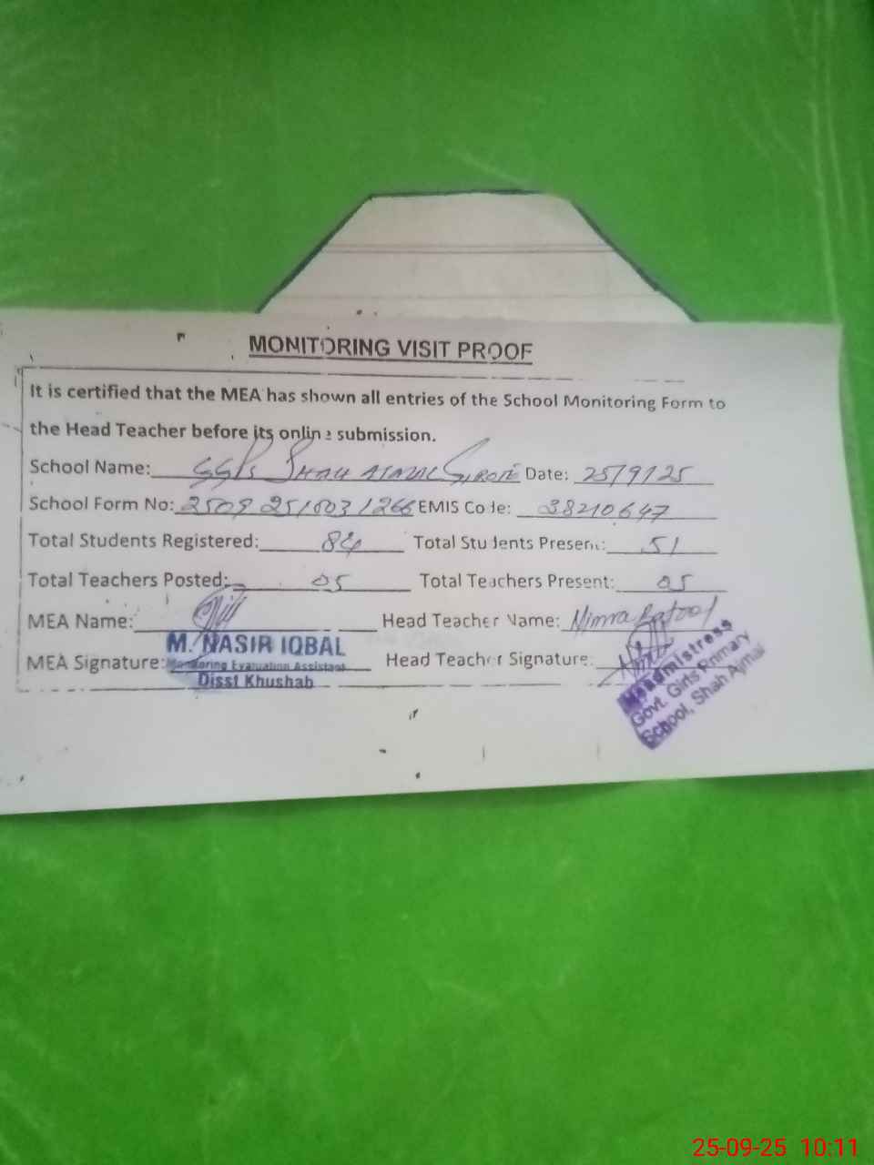 | EMIS Code: 38210647 | Name of School: GGPS SHAH AJMAL GIROTE | |||