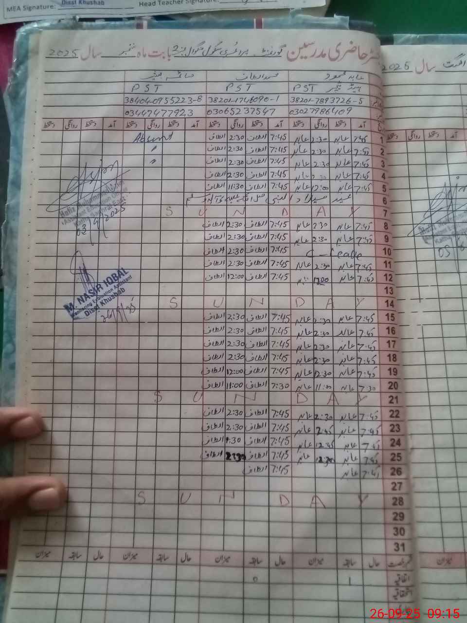 | Monitoring Date: 26-09-2025 | Start Time: 26-09-2025 08:56 AM | End Time: 26-09-2025 09:18 AM | Name of MEA: MU**** NA**** IQ**** | |