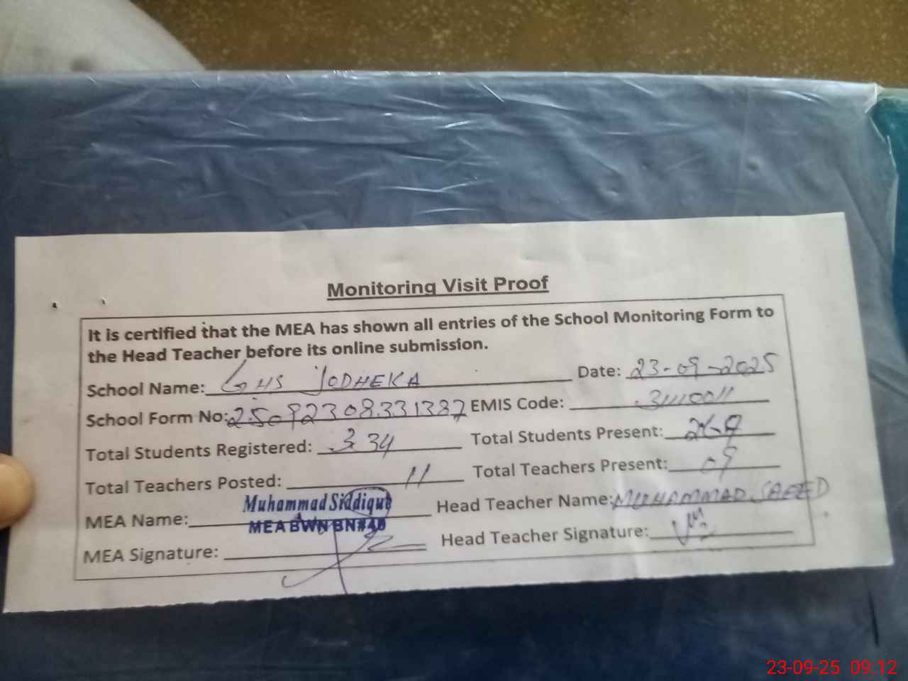 | EMIS Code: 31110011 | Name of School: GHS JODHEKA | |||