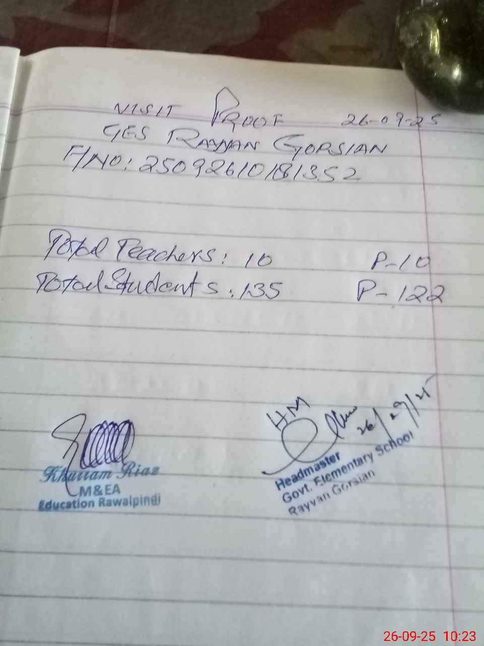 | Attendance Register | Head Teacher | MEA with School | Visit Proof |