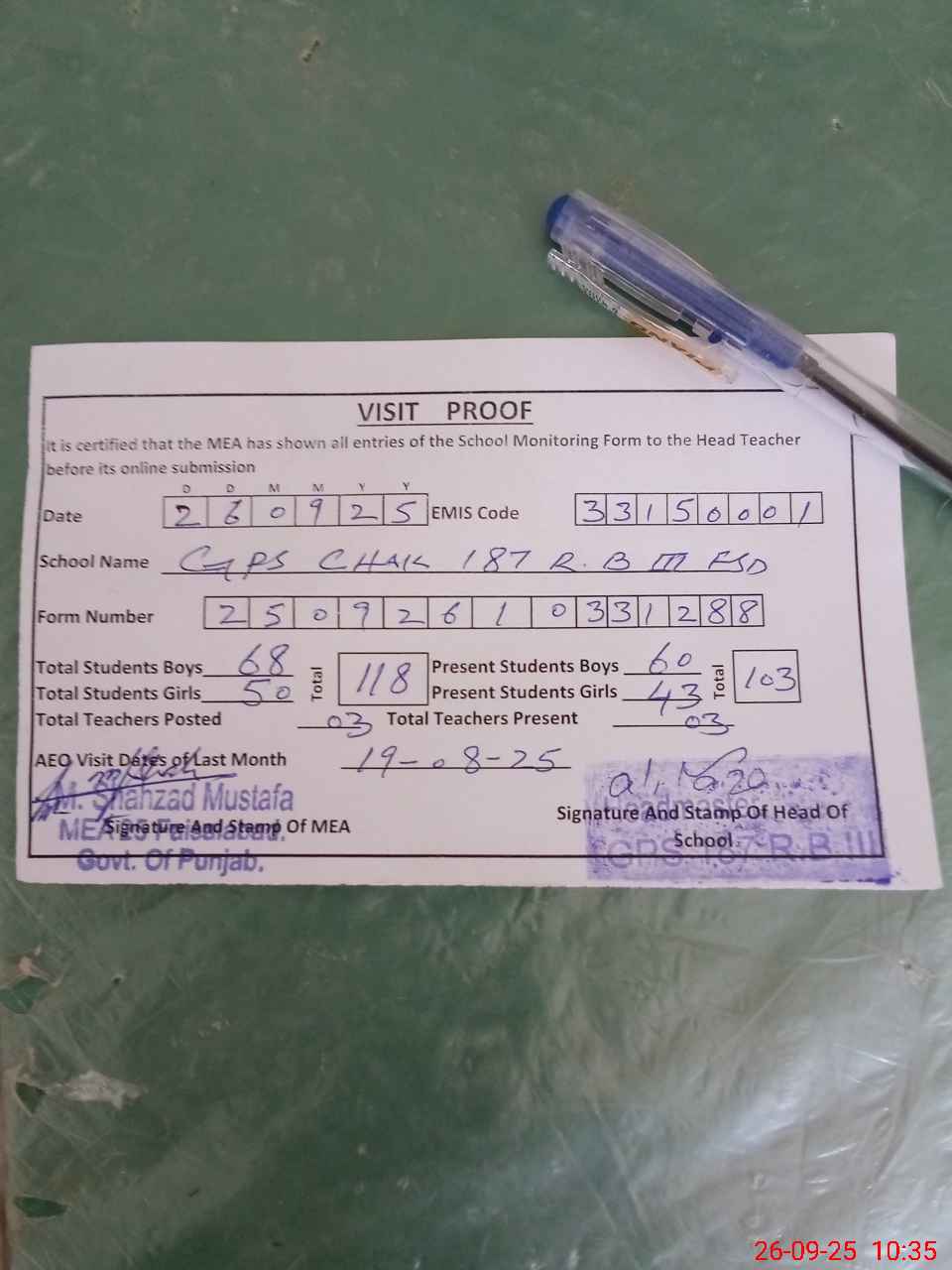 | EMIS Code: 33150001 | Name of School: GPS 187 RB III | |||