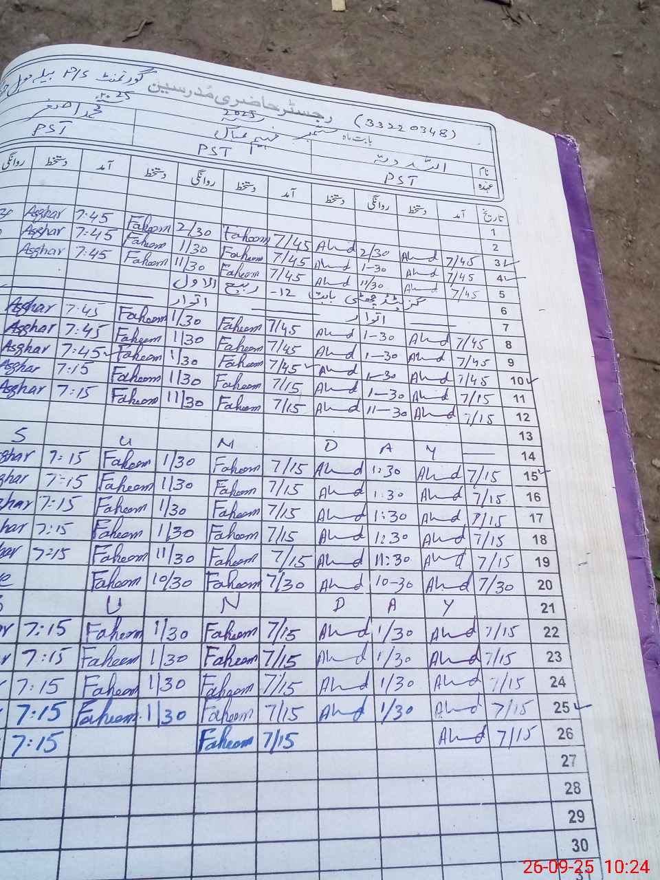 | Name: AL**** DI**** Designation: (School Headmaster's/Headmistress's) PST Phone/Cell Number: 03**** |
