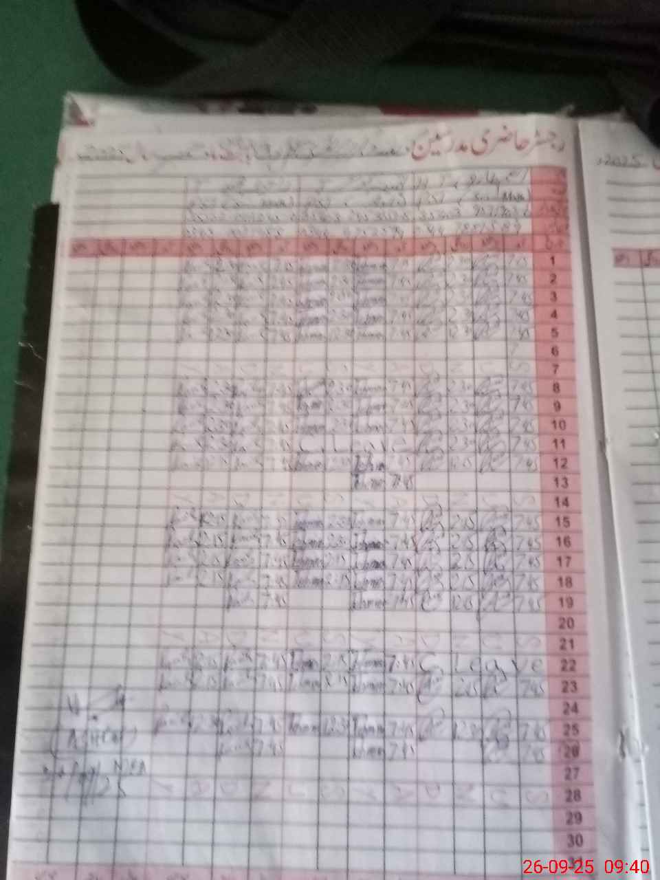 | CNIC | Full Name | Designation | R/C | Absence During Last Calender Month |